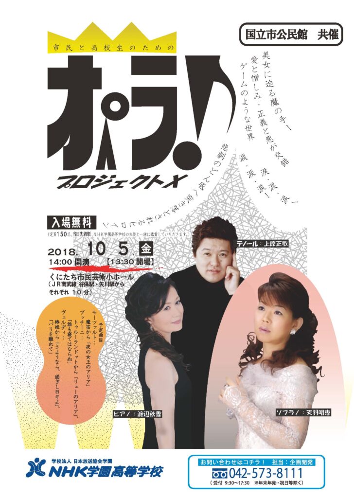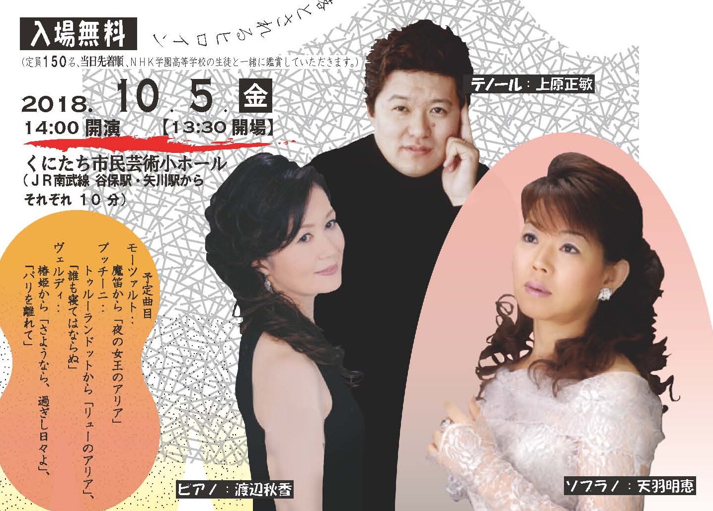 2018年10月5日(金)14時 くにたち市芸術小ホール共演:天羽明惠(Sop)・上原正敏(Ten)